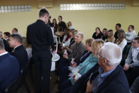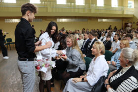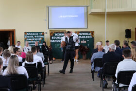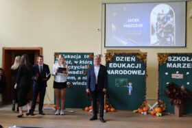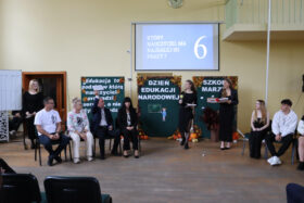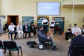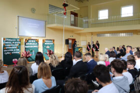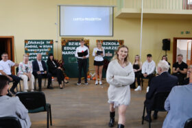 Po wyprowadzeniu Pocztu Sztandarowego uczniowie klas czwartych technikum zaprezentowali humorystyczne scenki z życia szkoły, sparodiowali ulubionych nauczycieli i przyznali swoje tradycyjne nagrody Sylwki w różnych kategoriach. Uśmiech z twarzy licznej widowni nie schodził do końca spotkania, które zwieńczone zostało słodkim i zdrowym podarunkiem w postaci jabłka dla każdego pracownika Szkoły.