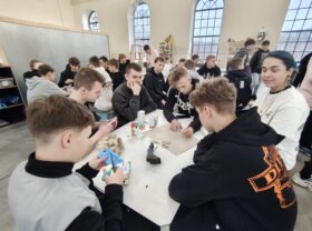 Następnie młodzież udała się do interaktywnej strefy SOWA – Strefy Odkrywania Wyobraźni i Aktywności, gdzie uczestniczyła w warsztatach z architektury oraz zajęciach doświadczalnych z zakresu fizyki, optyki, mechaniki i przyrody. Eksperymenty, stanowiska interaktywne i możliwość samodzielnego odkrywania zjawisk wzbudziły ogromne zainteresowanie uczestników.